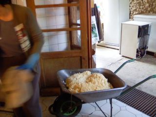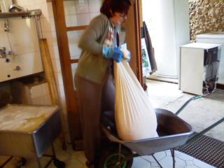 Der Sack füllt sich, man beachte die Stiefel des Meisters |